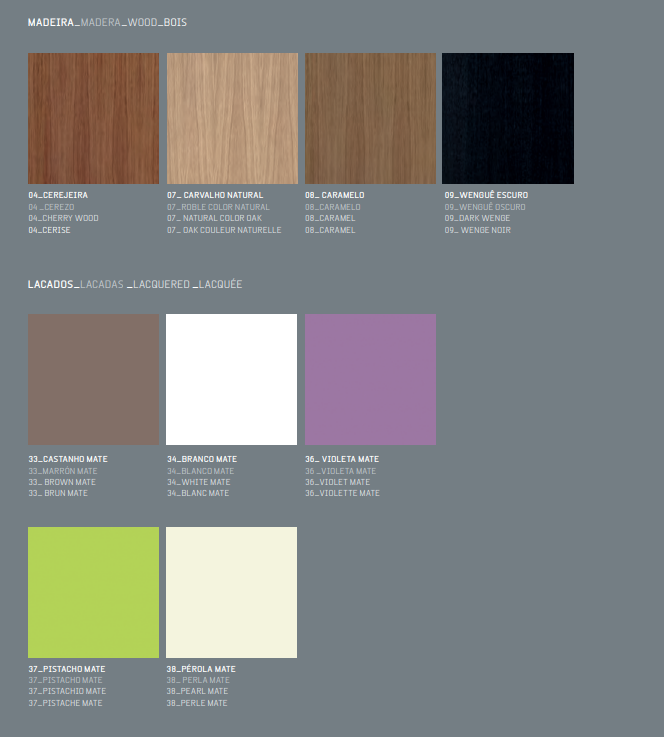 A linha MOON é fabricada em folha de carvalho natural em tudo o que é estruturas e frentes.