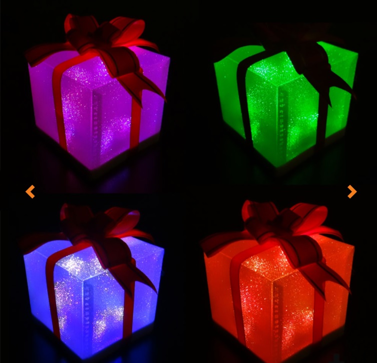 FIGURA COM FORMA DE PRESENTE COM LED 5X7CM, INCLUI 1 PILHA