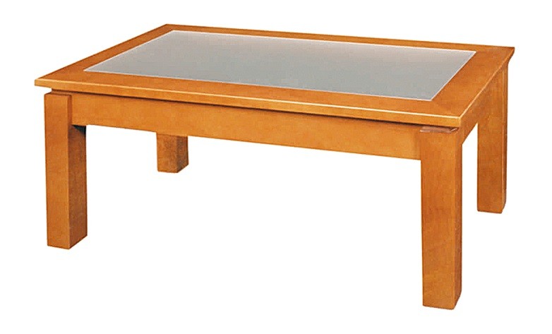 Mesa centro com tampo em vidro.