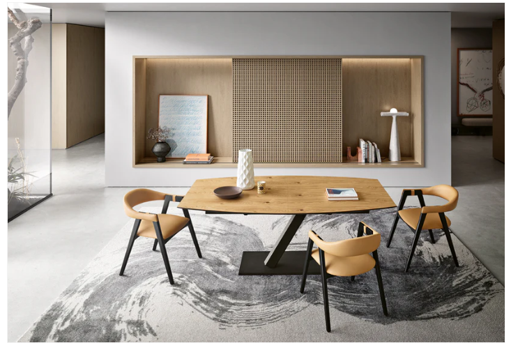Mesa de Jantar Corvo Ext. Oval pé ferro