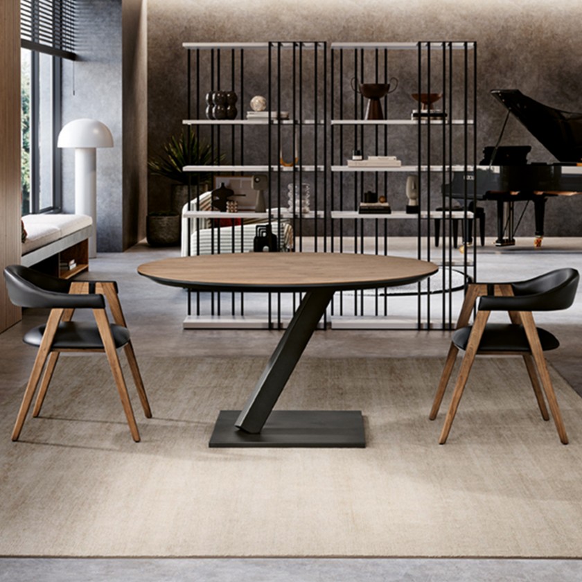 Mesa de Jantar Corvo Ext. redonda. Pé ferro Incl.