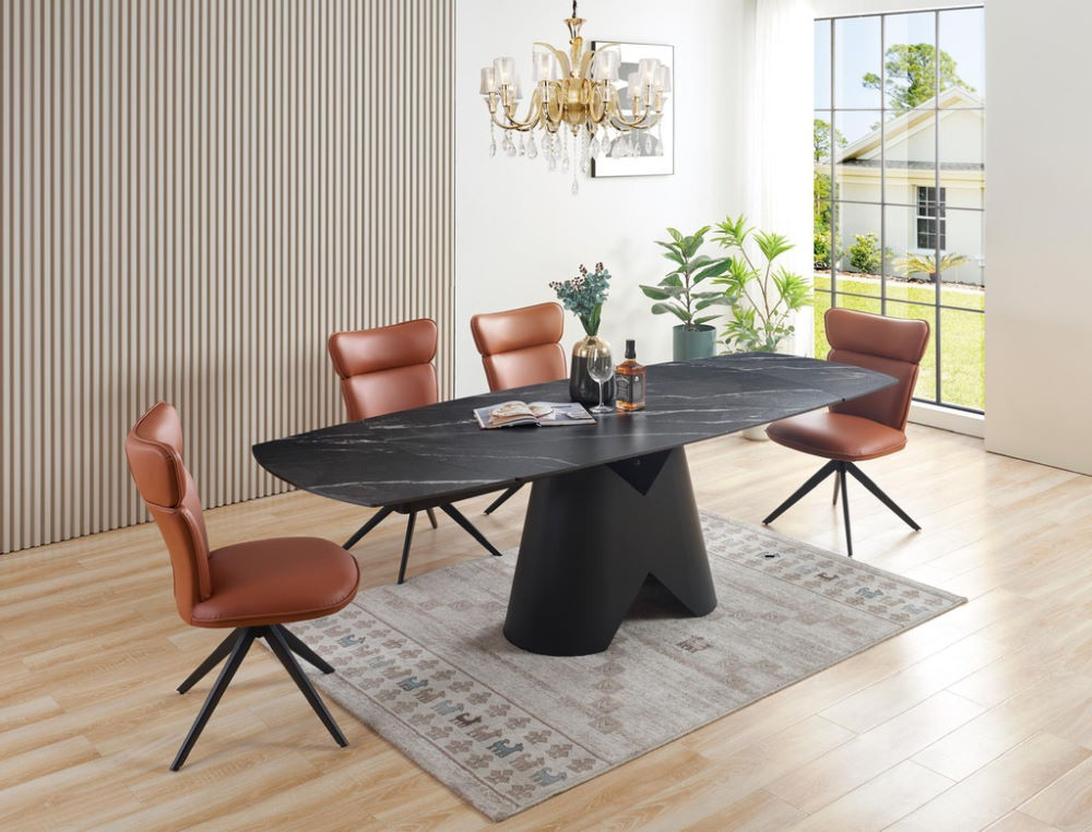 Mesa de Jantar Corvo Ext. Oval pé ferro