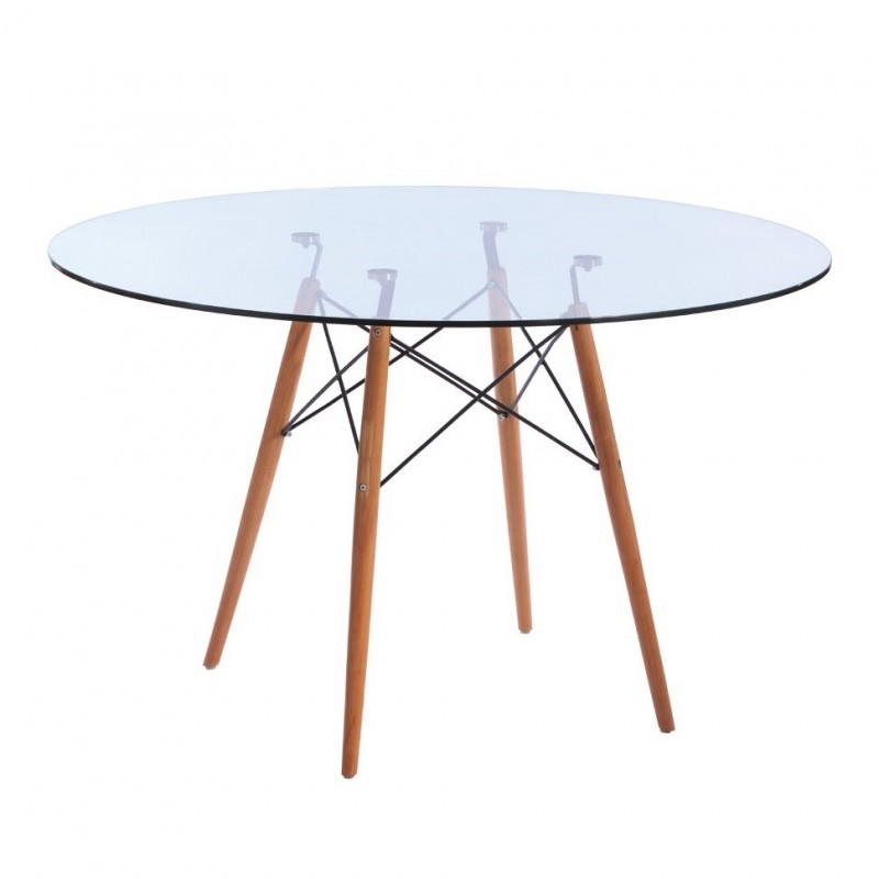 Mesa moderna, base de madeira de faia, tampo em vidro temperado.