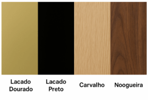| Cor | carvalho natural, Lacado preto, Lacado cinza, Lacado bege, Lacado dourado, Nogueira |