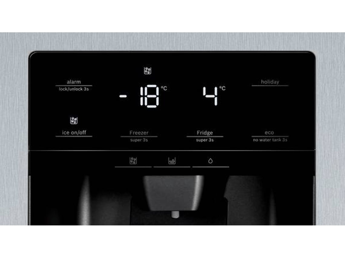 | Side by side NoFrost A++ com dispensador de água e gelo. Sem instalação à rede de água; NoFrost: fim da descongelação manual, graças à protecção da formação de gelo. Poupa tempo e esforço; Tamanho XXL. |