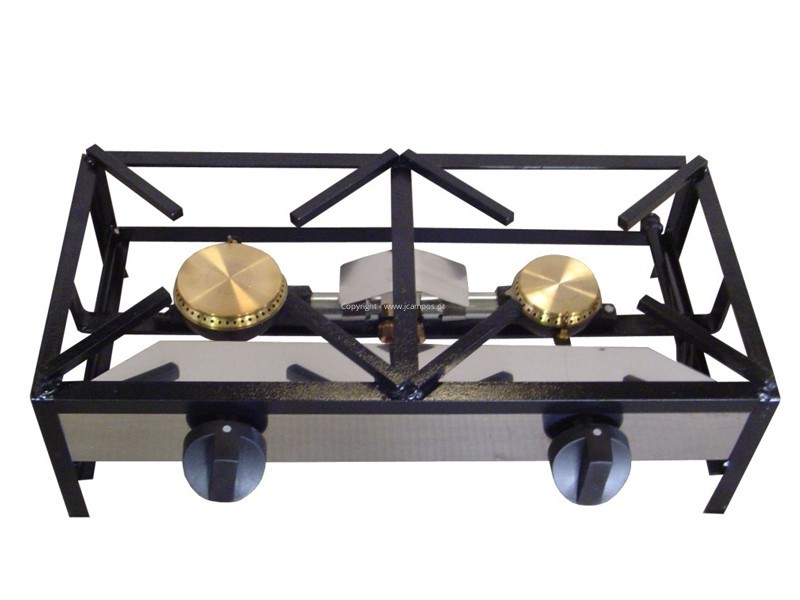 Trempe Em ferro esmaltado com frente em inox, com valvula de segurança, medida 80x40cm com 2 focos gás um de 100mm e outro de 80mm